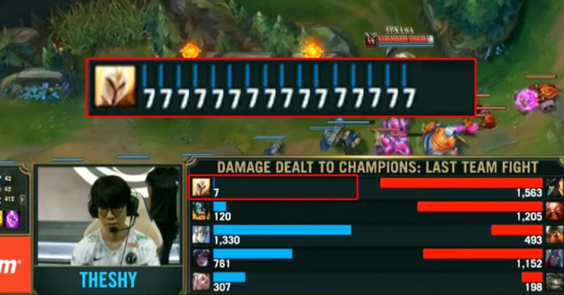 很多觀眾都好奇,此時戰績 8/5/4 並且為 IG 全隊最肥的 TheShy 其實丟出任何一個技能,甚至打一下普攻都遠不至這個傷害,到底這個單位數的傷害是從何而來的?